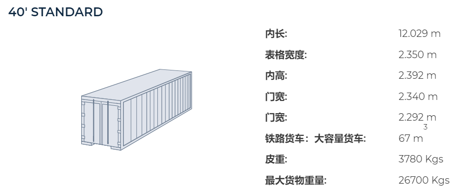 40尺集裝箱柜的體積與重量參數(shù):